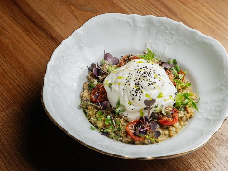 Какое утро без каши? Соленая, более сытная — зеленая гречка с белыми грибами и муссом из пармезана, как абсолютный «масттрай» ресторана, или сладкая вариация — рисовая каша на кокосовом молоке с чатни из груши и хрустящей гранолой. Картофельная хрустящая вафля участвует в вариации бенедикта с беконом и подается со скрэмблом и риетом из лосося. Но без классики никуда, поэтому классический бенедикт в «Тильде» готовят на мягкой бриоши с лососем гравлакс, а круассан начиняется ростбифом и соусом тоннато. Кто предпочитает легкие и полезные завтраки, по мнению шефа утренние «идеальные» комбинации выглядят так: стейк из кабачка с лососем и яйцом пашот или брускетта с анчоусами, артишоками, яйцом и романо в соусе цезарь.