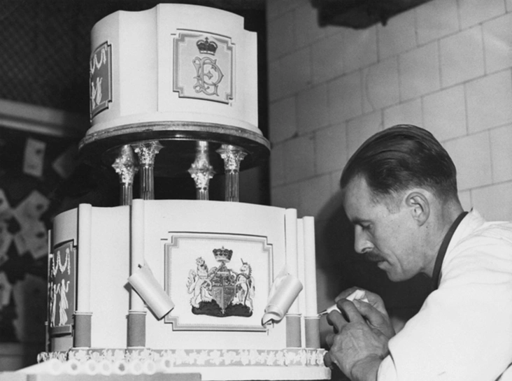 Торт для свадьбы дочки короля Великобритании Георга V и Филиппа Маунтбеттена изготовили кондитеры компании Mc Vitie and Price Ltd. Торт стал не только произведением искусства, но и символом дружбы, сплочения и взаимопомощи: в послевоенной Англии кондитерские ингредиенты были в дефиците, и многие из них были присланы Елизавете и Филиппу из-за границы в подарок. Четырехъярусный торт (почти три метра в высоту и весом около 250 кг) был щедро украшен монограммами молодоженов и фрагментами их фамильных гербов (читайте также: Пир после чумы: как Великобритания выдавала замуж будущую королеву Елизавету II).