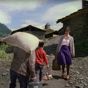 В начале душевной комедии Георгия Данелии есть один достаточно явный киноляп. Односельчанка Мимино (Вахтанг Кикабидзе) Лали (Русико Морчеладзе) идет ему навстречу с одним бидоном. А когда она оборачивается после замечания Мимино, у нее вдруг из ниоткуда появляется яркая красная сумка.