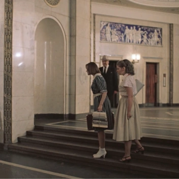 И еще одна странность: когда главная героиня Катя (Вера Алентова) и ее подруга Люда (Ирина Муравьева) идут в гости к своему дяде профессору, у последней каким-то неведомым образом меняется цвет обуви. На подходе к высотке на Баррикадной Людмила в туфлях белого цвета, а когда девушки заходят в подъезд, она уже в босоножках черного цвета.