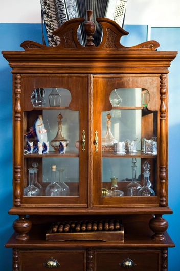 В каждой советской квартире был вместительный сервант со стеклянной частью, куда помещались сервизы и статуэтки. Если у вас тоже сохранилась подобная вещь, ее можно легко перекрасить в любой понравившийся цвет и вписать в современный дизайн. Некоторые владельцы не боятся экспериментировать не только с яркими оттенками, но и с росписью.