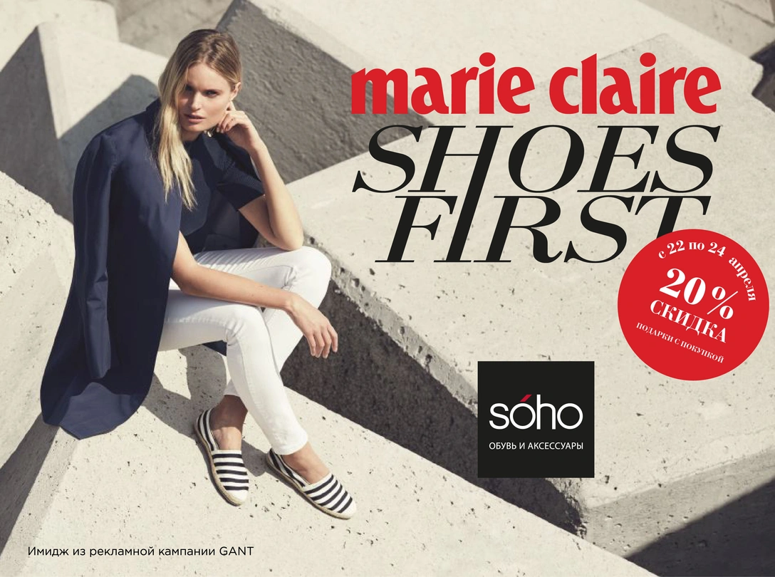 Праздничный шопинг приурочен к международному проекту Shoest First, который делает акцент на одной из самых важных составляющих женского гардероба – обуви. В октябре 2013 года Marie Claire USA впервые запустил Shoes First в США. В этом году Shoes First Marie Claire пройдет в Милане, Мадриде, Нью Йорке, Сиднее и Бангкоке.