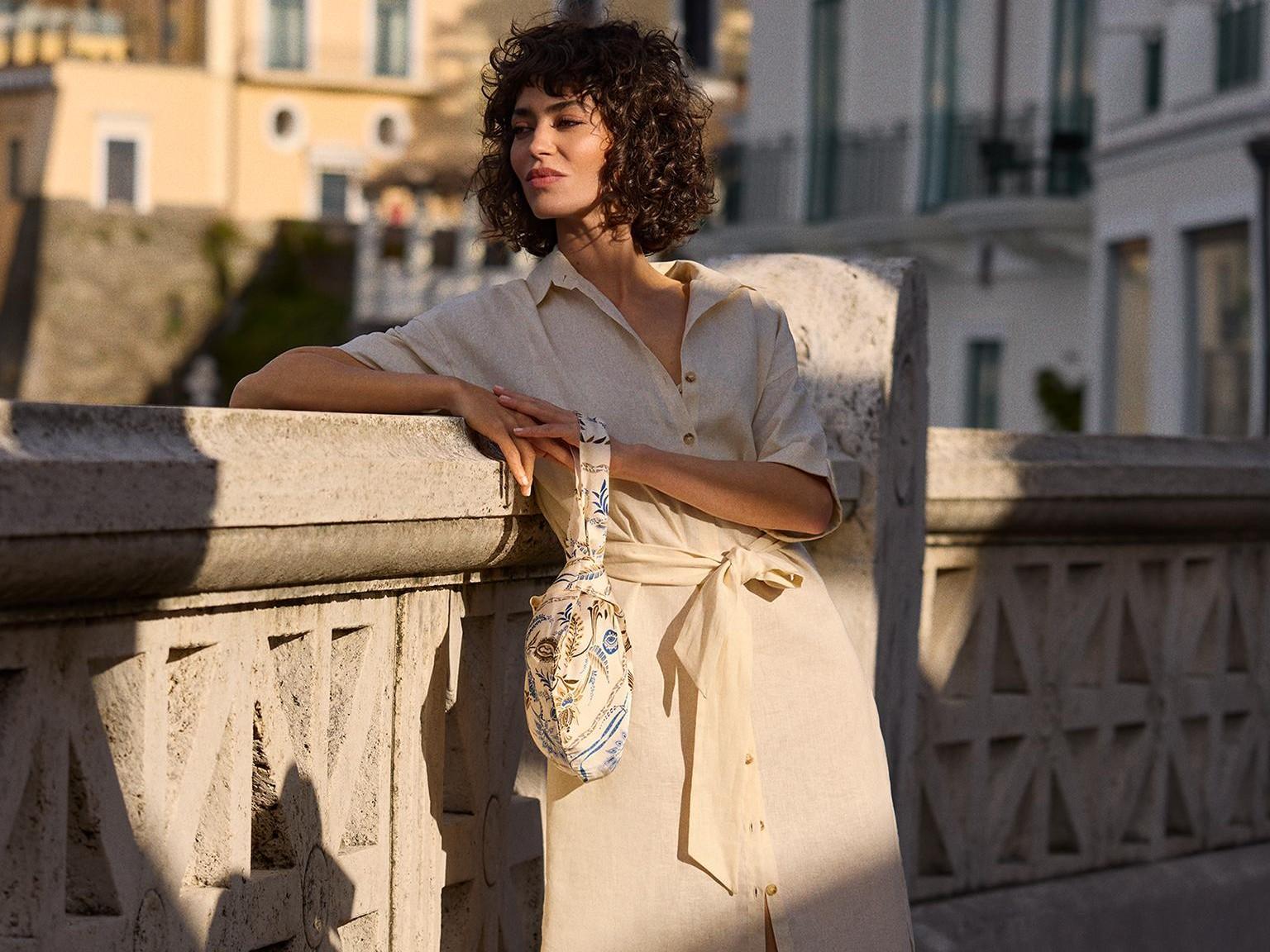 Итальянский стиль чувствуется в каждой детали. Нежное кружева макраме, которым славится Средиземноморье, окрашено в теплые натуральные тона и отсылает к цветам итальянского побережья. А принт майолика в глубоких синих и нежных медовых оттенках напоминает о морских пейзажах и оживляет изысканные ткани, из которых сделана коллекция. Это шелк, натуральный хлопок и ультрамодная бамбуковая вискоза. Весенне-летняя коллекция также включает изделия изо льна. Это модели в классических бежевых, белых, синих и черных оттенках, а также в глубоком зеленом цвете.