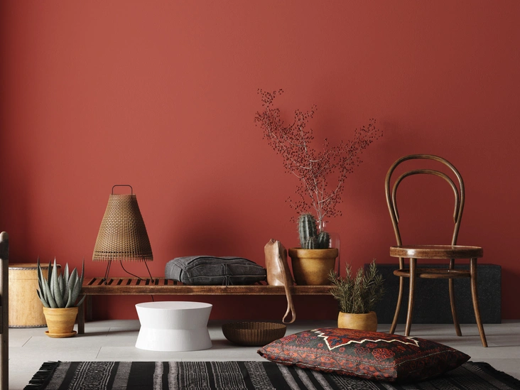 Выбор здесь зависит только от ваших предпочтений. Вы можете создать яркий акцент на одной из стен, покрыв ее пурпурной, оранжевой, бирюзовой, фиолетовой или салатовой краской и отдав ей главную роль в помещении. Или же в качестве базы выбрать нейтральные тона: белый, кремовый, бежевый, и выбрать пеструю палитру цветов для текстиля, мягкой мебели и декора.