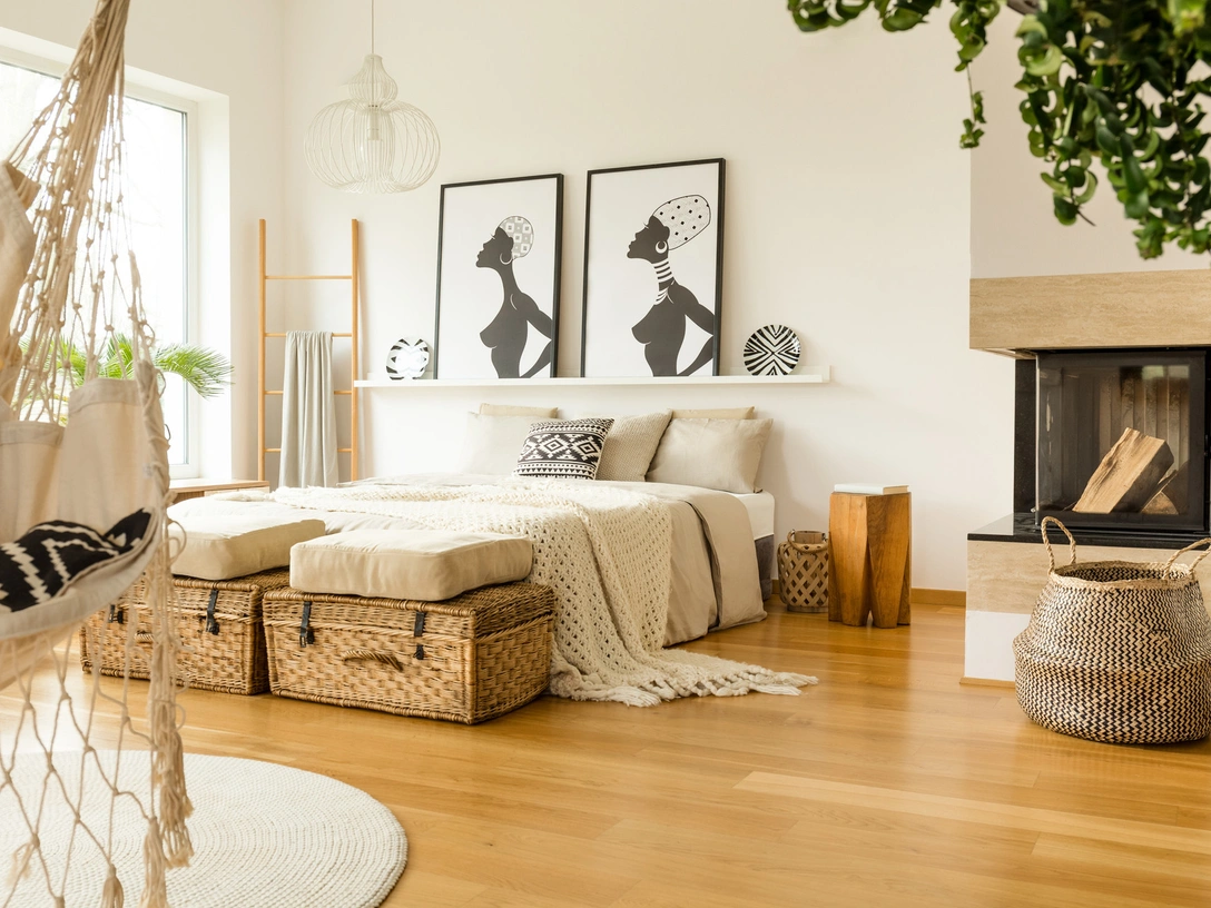 Плюс стиля бохо эко в том, что все материалы безвредны и в окружении живых цветов и плетеной мебели создают особую атмосферу в вашей квартире.