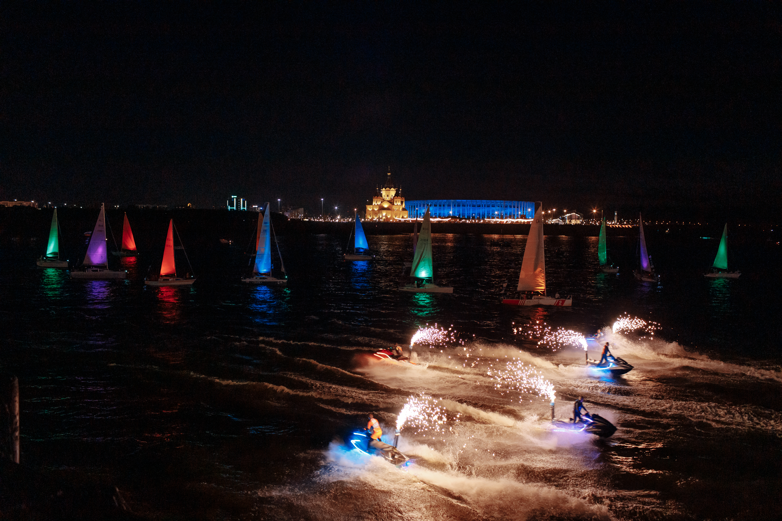 Конечно же, в городе, расположенном на месте слияния двух рек, должен был быть создан фестиваль на воде. И к юбилею Нижнего Новгорода это произошло. Фестиваль «Волжская регата» включает в себя зрелищный парад парусов, состоящий из десятков яхт, виндсерферов, вейкбордистов, кайтсерферов и сапбордистов, а также шоу с участием спортсменов различных водных направлений, вечерней парусной регаты «Силы ветра» и парусно-светового шоу после заката.
