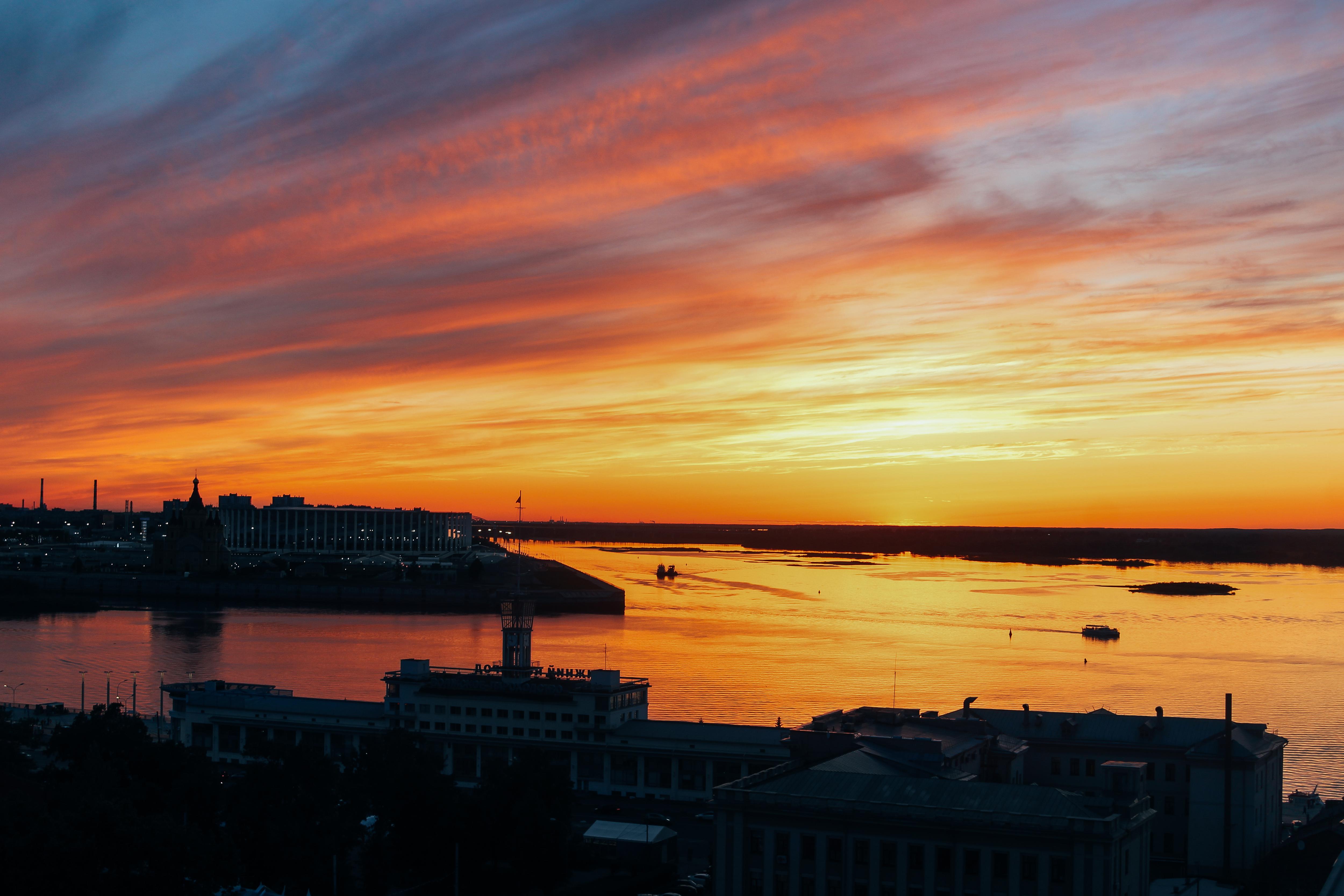 И конечно же, в Нижнем Новгороде нужно хоть раз увидеть заход солнца. Недаром этот город называют столицей закатов — под вечер по небу разливаются фантастические краски, достойные того, чтобы быть запечатленными на художественном полотне. Встретить закат можно на Чкаловской лестнице, на набережной Федоровского, на одной из смотровых площадок (к примеру, на смотровой площадке недавно воссозданной Соборной колокольни Нижегородского кремля — с нее открывается такой панорамный вид, от которого буквально захватывает дух) или на территории Стрелки — места, которое соединяет Оку и Волгу и является неофициальной визитной карточкой Нижнего Новгорода.