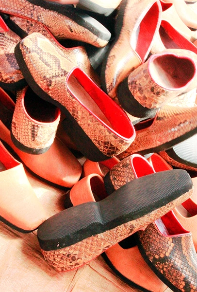 - Национальная обувь markoub из кожи с круглым носом.
