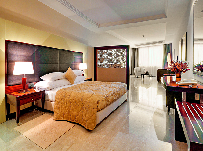 Теперь это главный центр суданского гостеприимства – 16 лихих этажей из мелованного камня, прозрачного стекла и матовой стали разместили 230 номеров разной уровни роскошности. Зная о широте души диктатора, чувствительного ко всему прекрасному, даже самые простые номера своими размерами здесь напоминают полигоны, закатанные в прохладу светло-бежевого мрамора.