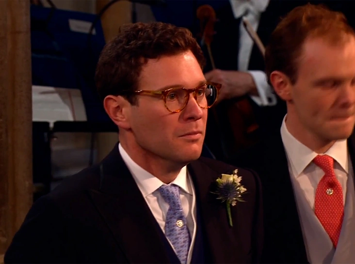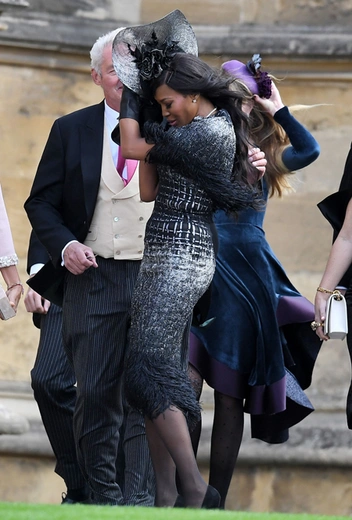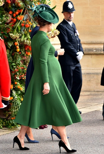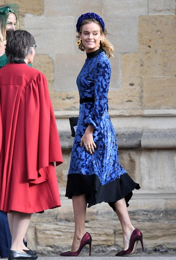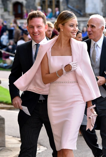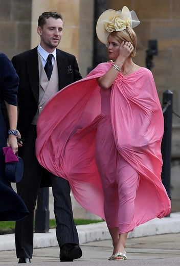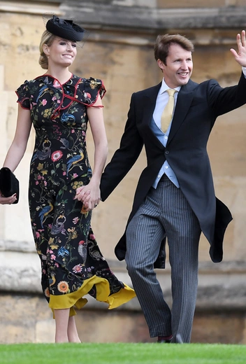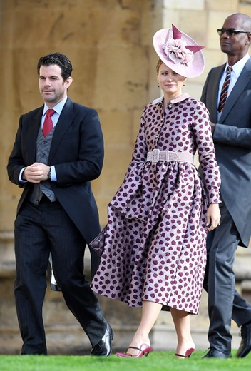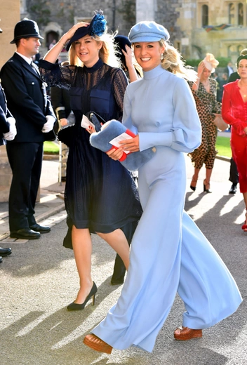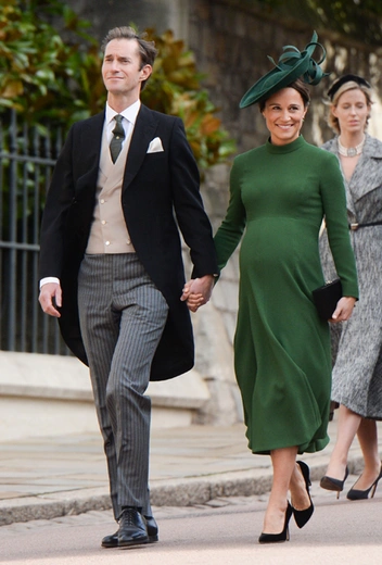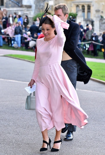Вопреки ожиданиям, что свадьбу пропустит глубоко беременная сестра герцогини Кембриджской, Пиппа Мэттьюз/Миддлтон прибыла на мероприятие, причем, пешком, а не на лимузине, как многие другие члены королевской семьи. Сопровождали ее муж и брат, Джеймс Миддлтон.