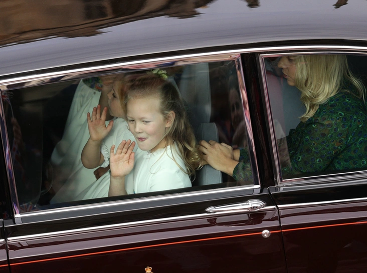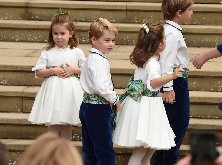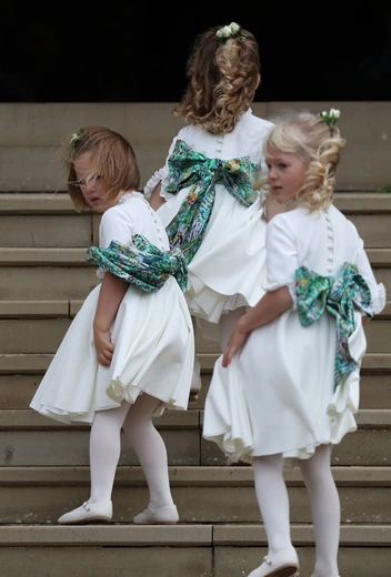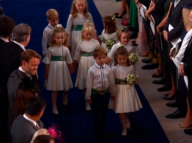Цветочницы: принцесса Шарлотта, Мия Грейс Тиндолл, Саванна Филлипс, Айла Филлипс, Мод Виндзор и единственная девочка не королевских кровей ─ Теодора Роуз Уильямс, дочь певца Робби Уильямса.