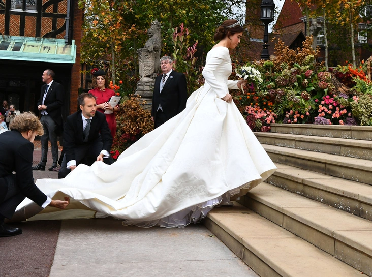 Самой большой интригой свадьбы были платье и тиара невесты. Итак, карты раскрыты: над нарядом работал британский бренд Peter Pilotto в лице двух дизайнеров ─ самого Питера Пилотто и Кристофера де Воза. Отдельно рассказываем, почему свадебное платье принцессы Евгении было удачнее, чем у Меган Маркл.