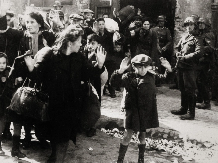 Вероятно сделанная нацистским офицером Францем Конрадом, эта фотография запечатлела момент, когда нацисты сгоняли евреев в Варшавское гетто. Центром кадра стал испуганный 9-летний мальчик с поднятыми руками — по одной из версий, это мог быть Цви Нуссбаум, впоследствии ставший врачом в Нью-Йорке, хотя эта гипотеза так и не была подтверждена. Как писал Клэй Харрис в The Washington Post в 1978 году, эта фотография «разрывает сердце, потому что при взгляде на него возникает четкое ощущение, что этот мальчик, как и миллионы других, обречен на смерть от рук нацистов».