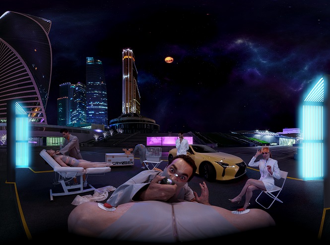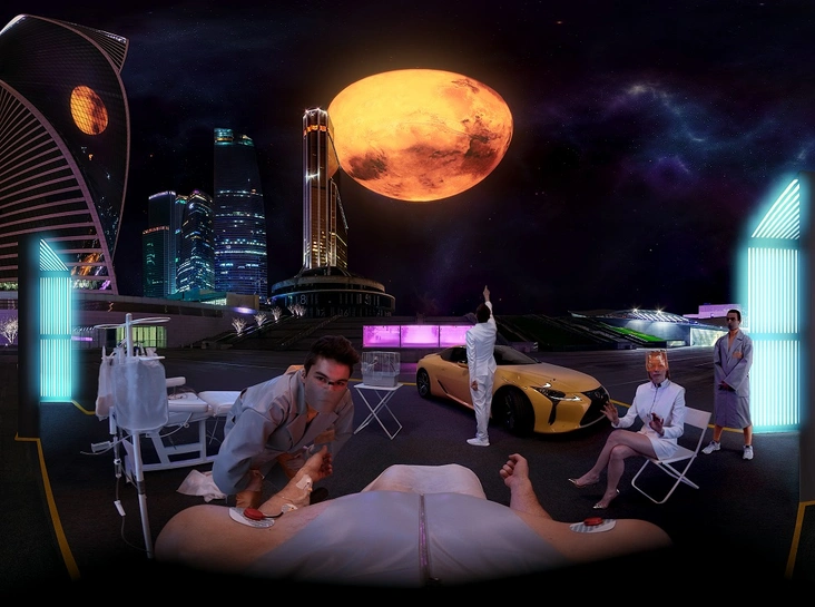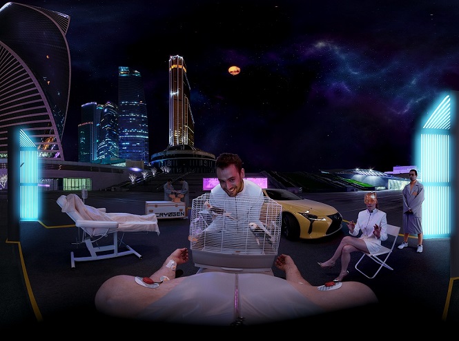 Одновременно за постановкой могут наблюдать два зрителя с помощью VR-гарнитуры. Полностью погрузиться в виртуальную реальность возможно благодаря зеркальному «Космическому кубу», специально установленному в мультифункциональном пространстве Lexus в Москва-Сити.