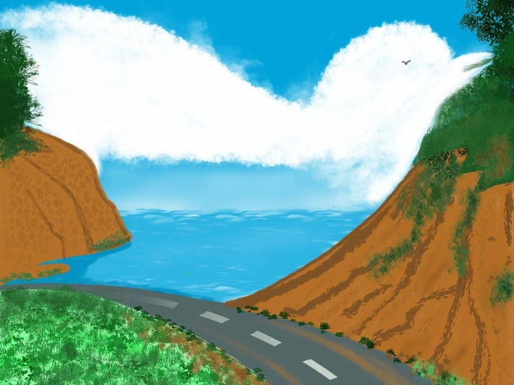Итак, забор позади домов — это ноги слона. Расстояние между высоким домиком и деревом — это его хобот. Птичий клин — это спина животного. А небольшая птица рядом с деревом — это глаз слона.