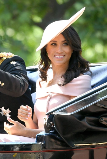 В этом году Trooping the Colour стал особенным: впервые к параду присоединилась Меган Маркл. Британская королева очень полюбила невестку, и совсем скоро герцогиня Сассекская вместе с Ее Величеством отправится в поездку в Чешир — такой чести до нее не удостаивались ни принц Уильям, ни Кейт Миддлтон. Для традиционного королевского ритуала экс-актриса облачилась в платье Carolina Herrera пастельно-розового оттенка с элегантным декольте. И, следуя дресс-коду morning dress, герцогиня Сассекская надела шляпку работы Philip Treacy.