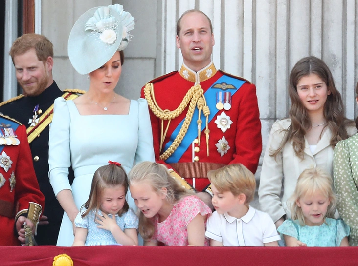 Традиционно на празднике в честь официального дня рождения Королевы собираются практически все члены королевской семьи.