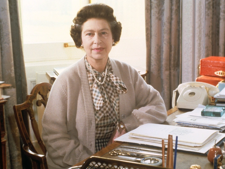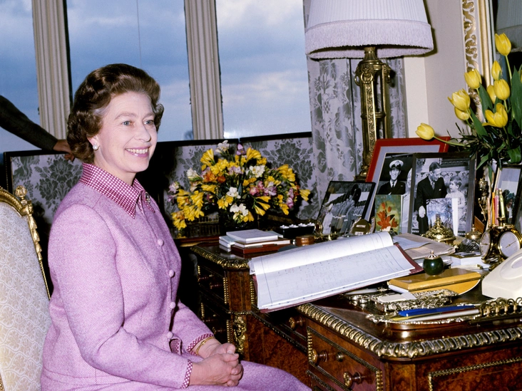 У Ее Величества есть кабинет в каждой из резиденций. Также у монарха всегда были обустроены рабочие места в королевском поезде и на яхте «Британия» до того, как из нее сделали музей (читайте также: Плавучий дворец Елизаветы: как выглядела любимая яхта Королевы (и как она проводила там время)). Стол, за которым Елизавета привыкла работать в Виндзорском замке, был запечатлен еще в 1970-х. Как и другие рабочие столы Ее Величества, он весьма основателен. На прямоугольной столешнице, помимо ежедневника и рабочих бумаг, помещаются свежие цветы и семейные снимки. На одном из них запечатлен супруг королевы, на другом — ее отец и старший сын. Судя по последним фотографиям, монарх по-прежнему пользуется этим же дисковым телефонным аппаратом.
