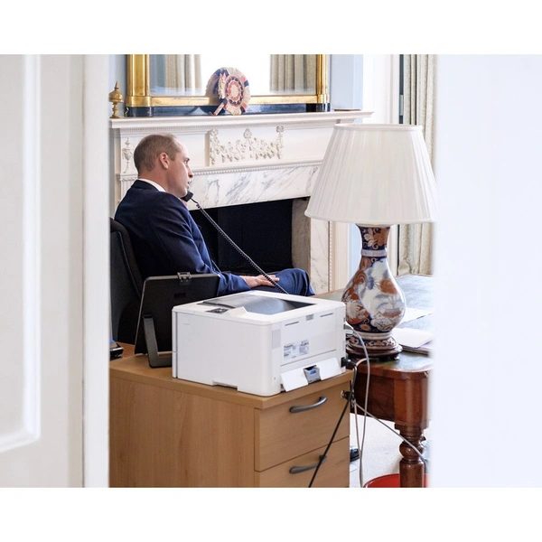 Домашнее рабочее пространство герцого Кембриджского немного строже. У него большой деревянный стол, свободный от всякого декора, рядом с которым стоит тумбочка со сканнером. На ней помещается единственная фоторамка. Самым броским акцентом стала настольная лампа с китайском стиле. В отличие от герцогини Камиллы, принц Уильям камин в своем офисе, кажется, не зажигает.