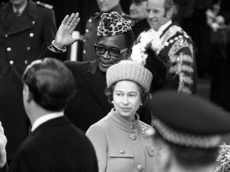 Президент Заира (Демократической Республики Конго) захватил власть в 1965 году и следующие три десятилетия руководил одним из самых жестоких и печально известных африканских режимов. Мобуту Сесе Секо совершил государственный визит в Великобританию в 1973 году, когда его принимала британская королева. На снимках его легко узнать по фирменному леопардовому головному убору. Западная поддержка диктатора пошла на убыль в начале 1990-х годов после многолетних обвинений в его адрес в нарушениях прав человека и ужасающего уровня коррупции. Мобуту Сесе Секо умер в изгнании в 1997 году.