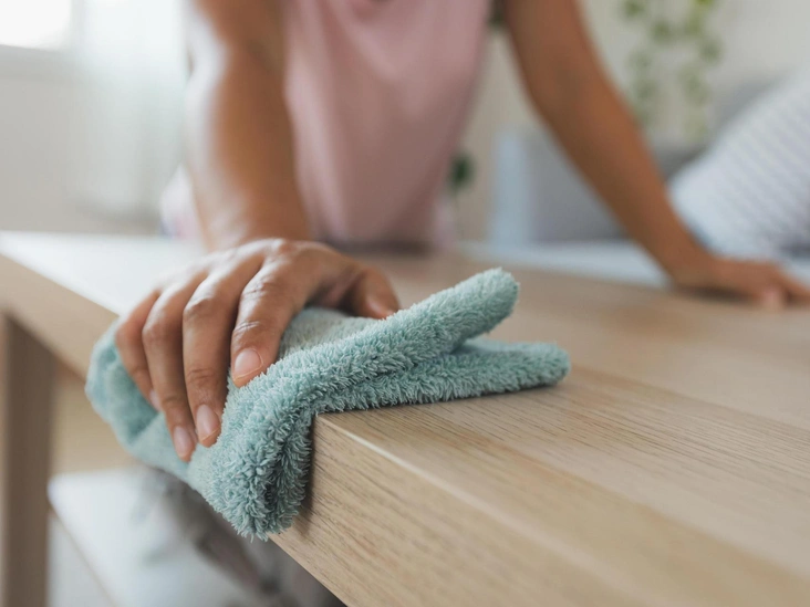 Еженедельная уборка — идеальный график для вытирания пыли при соблюдении условия, что вы используете в качестве тряпки для влажной уборки качественную ткань из микрофибры и не забываете ее периодически менять на новую (читайте также: «8 самых полезных вещей для дома, которые сократят вам время на уборку»). «Микрофибра удаляет до 99 процентов бактерий с любых поверхностей, и ее можно использовать без вреда для мебельного лака», — объясняет эксперт по уборке. Как удачливому обладателю такой тряпочки, вам остается только убедиться, что ткань не слишком влажная, иначе на мебели останутся заметные разводы.