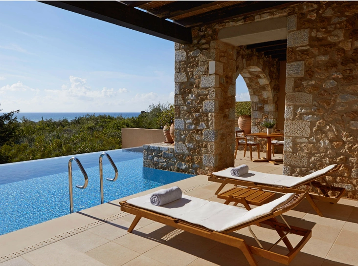 Среди густых оливковых рощ с видом на Ионическое море расположились два отеля: The Romanos, a Luxury Collection Resort и The Westin Resort, Costa Navarino.