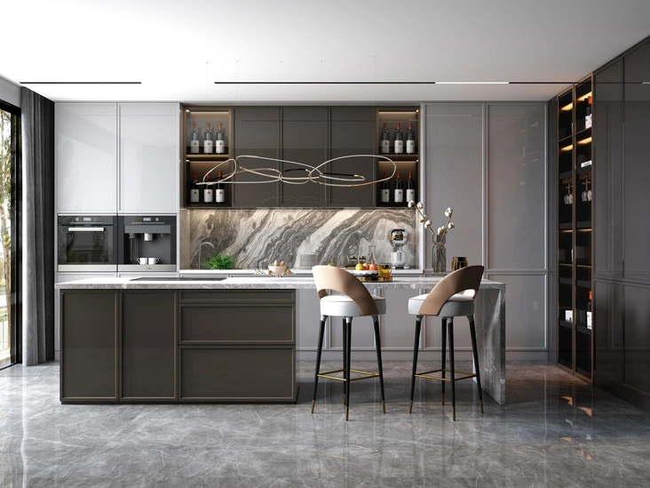 Кухня — это уютное место, где собирается семья и создаются кулинарные шедевры. Следует позаботиться о том, чтобы это пространство было безупречно организовано. Чтобы добиться этого, разделите пространство на функциональные зоны — место приготовления пищи, столовая и гостиная. Сделать это можно с помощью визуальных (зонирование пространства с помощью выделения каждой зоны отдельным цветом или отделкой определенными материалами, фактурами) или функциональных (с помощью специальных строительных конструкций, арок, мебели) способов.