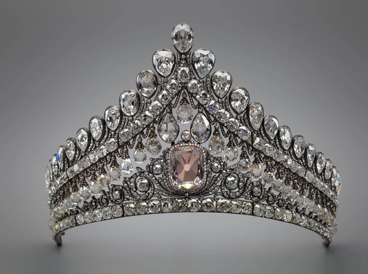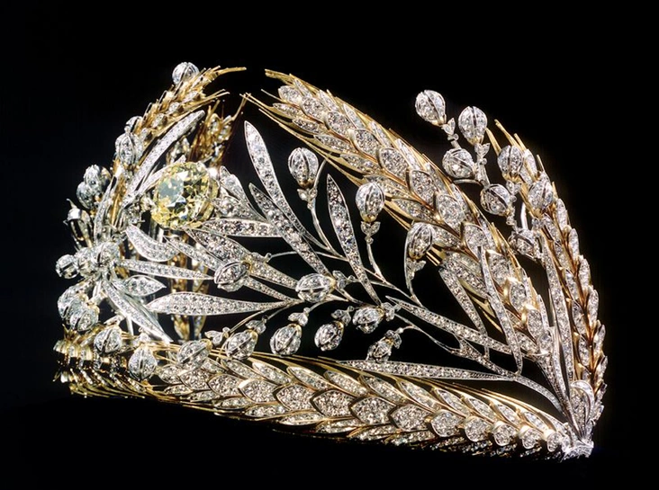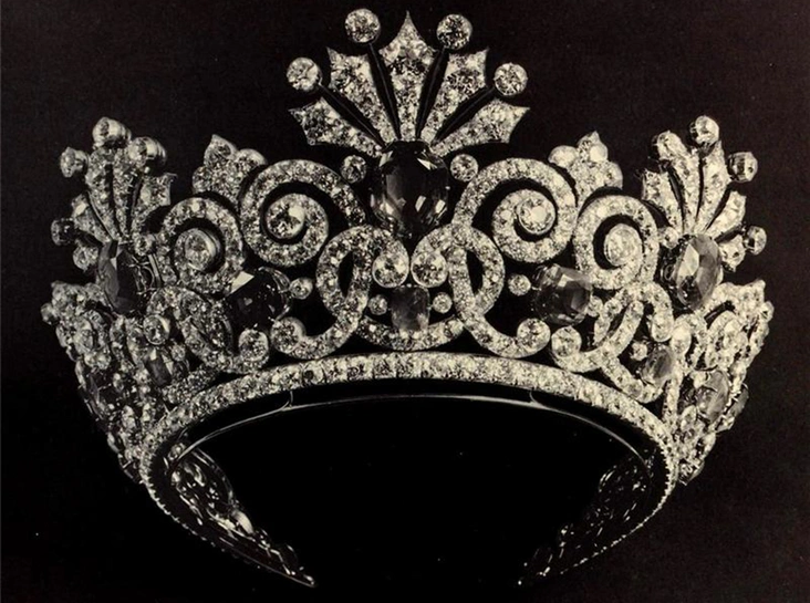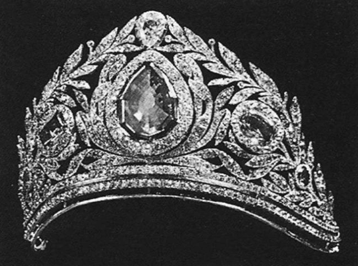 История этой диадемы так же остросюжетна и интересна, как и история Владимирской, ведь она в свое время тоже принадлежала Великой княгине Марии Павловне, сумевшей, благодаря дружбе с английским дипломатом, вывезти свои сокровища из России.