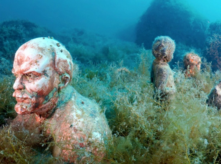 На дне Черного моря скульптуры оказались по другой причине. В 90-е годы сюда свезли статуи, которым больше не нашлось места на улицах российских городов. Бюсты Ленина, Дзержинского, Крупской, всего порядка 50, составили подводную «Аллею вождей».