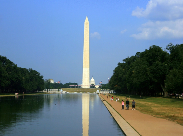 Монумент Вашингтона построен в честь первого президента Америки. Здание высотой 169 метров было самым высоким в мире, пока не появилась Эйфелева башня.