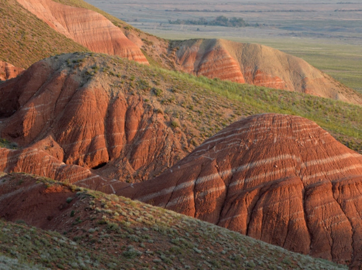 У этого китайского чуда есть аналог в России. В Богдинско-Баскунчакского заповеднике, рядом с Ахтубинском, стоит гора Большое Богдо. Это самая высокая точка края. Ее огненно-красный оттенок ярко выделяется на фоне парка и навсегда отпечатывается в памяти. Кроме необычного цвета у горы есть еще несколько интересных особенностей: с каждым годом она растет и, благодаря испещряющим ее пещерам и гротам, умеет петь. Буддисты считают это место священным.
