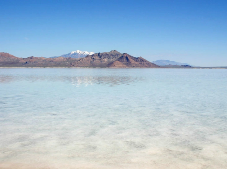 Большое соленое озеро, на берегу которого стоит Солт-Лейк-Сити — столица штата Юта, крупнейший минеральный водоем в западном полушарии. Здесь прекрасно в ясную погоду, когда в озере отражается голубое небо, а кристаллы соли блестят на солнце.