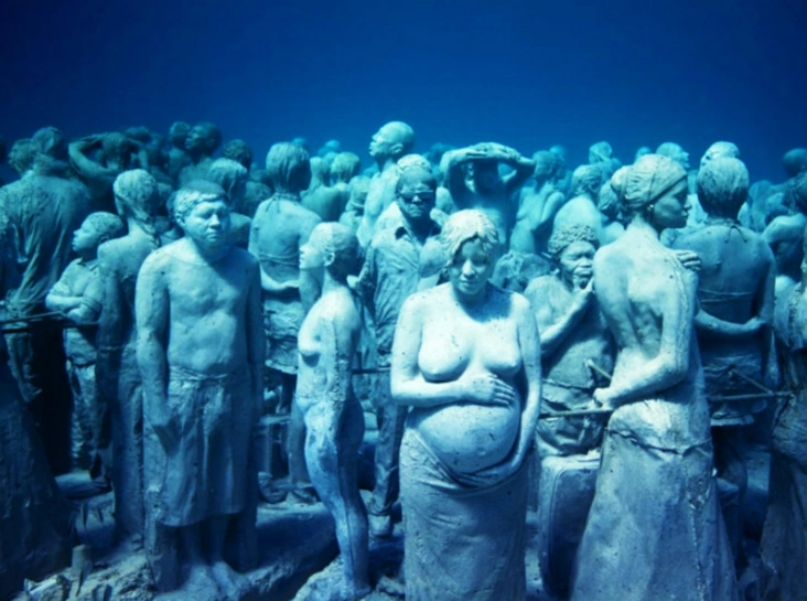 Музей скульптур в Канкуне спрятался под водой. Он создан, чтобы привлечь внимание к проблеме загрязнения побережья. Музей частный. С момента создания в 2009 году он вырос в четыре раза, сейчас в нем 400 скульптур. Толпа людей на дне Карибского моря — поразительное зрелище.