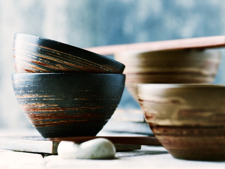 Ваби-саби — это очарование ручной работы, когда каждое изделие уникально и создается в единственном экземпляре. Прекрасным выбором станет керамика, в которой контрастирует глазурь и необработанность. Подтеки и разводы глазури или краски, царапины, склеенная трещинка — в философии ваби-саби нюансы ремесленной работы и проявления износа посуды таят в себе бесконечную красоту бесценного момента, который уже не повторится.
