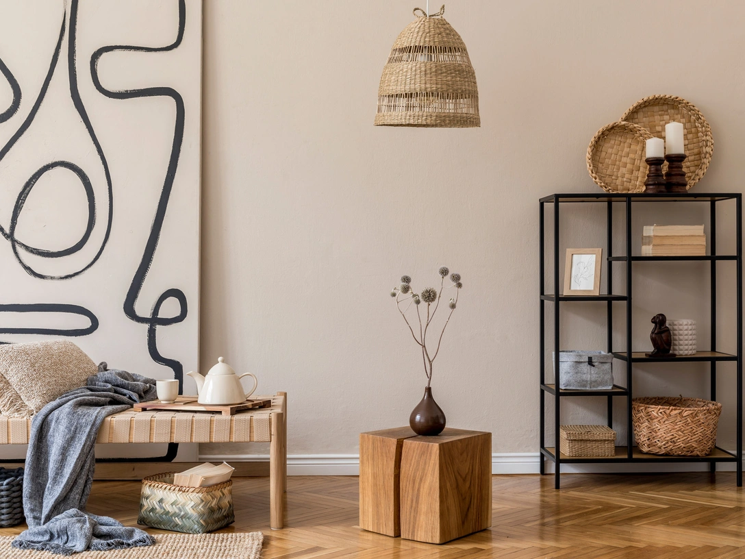 Интерьер в стиле ваби-саби тоже предлагает нам отказаться от излишеств в виде декора, «украшательств», яркости и искусственности в пользу осознанной сдержанности. Смысловым центром этого направления является сам человек, который создает себя внутри среды, но не за счет эстетики этой среды — формирование самосознания идет путем внутреннего самопознания, а не с помощью окружения. И ничто вокруг не должно отвлекать от этого процесса. При этом интерьер должен быть удобным для жизни, поэтому большое внимание уделяется гармонии оттенков, фактурам материалов и их натуральности, несимметричности линий и форм, а также системам хранения, чтобы исключить фактор визуального шума из-за нагромождения вещей.