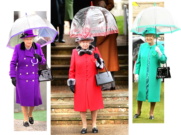Яркий зонт осенью становится неотъемлемой частью публичных аутфитов британской королевы ─ таким же, как неизменный каблук 2 ¼ дюйма, рукав «три четверти» и сумочка модели «Травиата». В умении раскрашивать яркими красками серые лондонские будни Елизавете II нет равных: с чисто английскими унылостью, хмуростью и безликостью она справляется так элегантно-мило, что «веселые картинки» в виде монарших монолуков давно застолбили место на страницах fashion-глянца.