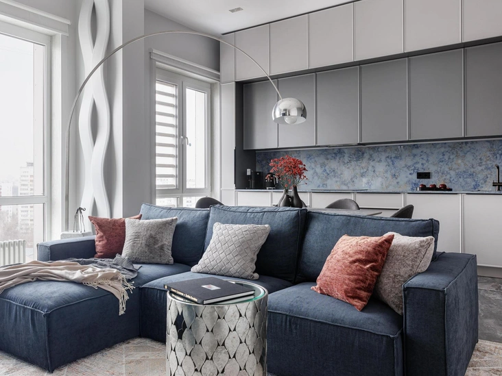 Форма: это может быть как спинка дивана в форме волны, так и изгиб линии света от светильника, напоминающий течение. Все, что именно физическими границами наводит нас на мысль.