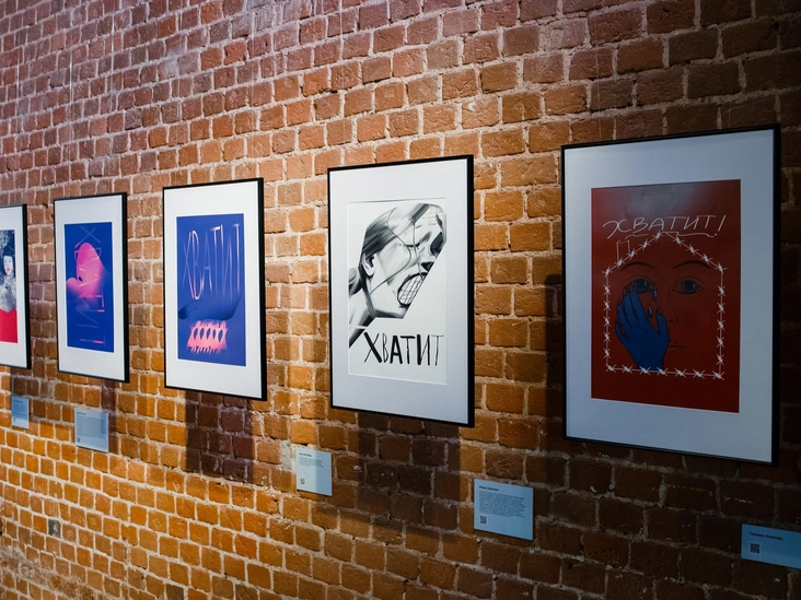 В фойе кинотеатра располагалась выставка художников, которые высказались на тему насилия специально для START накануне премьеры проекта. Так, в экспозиции появились пронзительные работы Варвары Гранковой, Маши Шишовой, Анастасии Мясниковой, Дмитрия Пахомова, Ирины Полонской, Полины Осиповой, Татьяны Иванковой, Юлия Нефедовой и Кати Октябрь, картина которой использована в качестве постера проекта «Хватит!».