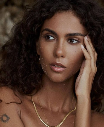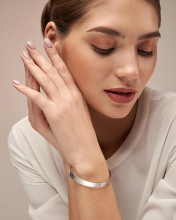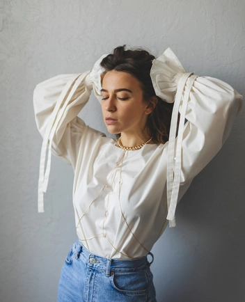 В крупных планах всегда есть особенная магия: эмоция, отраженная на лице, передается особенно ярко. Попробуйте опустить одно плечо, направить взгляд в сторону и поднести руку к лицу — так вы добавите кадру загадку.
