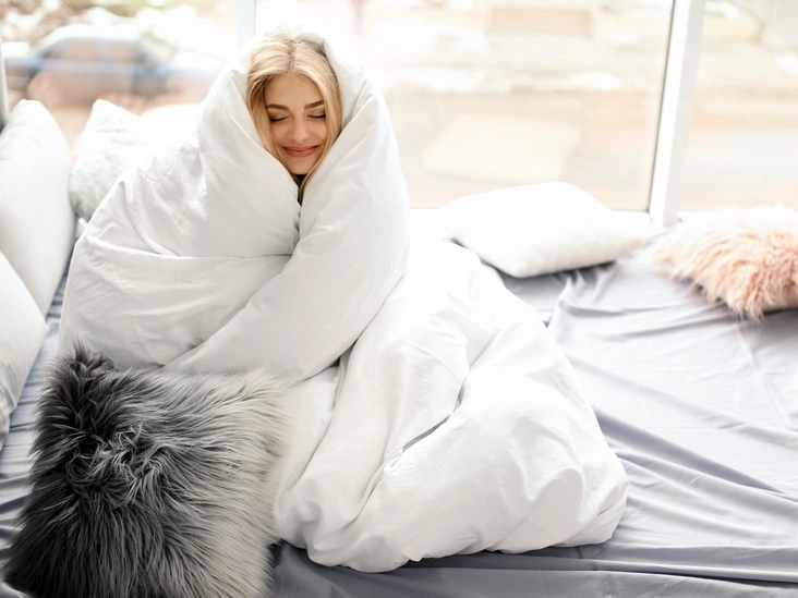 Сомнологи сходятся во мнении — в холодное время года лучше всего спать под утяжеленным одеялом. Оно имитирует ощущение объятий и вызывает всплеск гормонов хорошего настроения: окситоцина и серотонина. В результате вы спите крепче и просыпаетесь в отличном расположении духа. Сон под тяжелым одеялом (конечно, в дополнение к основной терапии) помогает даже при таких тяжелых состояниях, как ПТСР, хроническая тревожность, СДВГ, депрессия и бессонница.