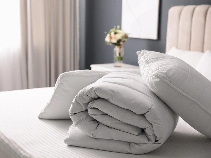 Важно учитывать и размер одеяла — оно должно полностью покрывать тело. Также постарайтесь отдать предпочтение одеялу из натуральной ткани и с натуральным наполнителем (шерсть, пух, бамбук, хлопок и пр.).