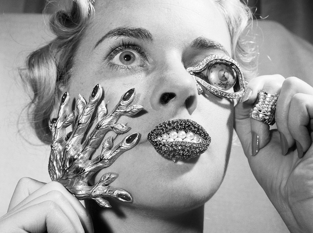 Помните сюрреалистический интерьер — комната Мэри Уэст, где глаза — окна, а диван повторяет форму губ актрисы? Этот образ не оставлял Дали в покое и при создании украшений. Так появилась брошь «Рубиновые губы» с выглядывающими 13 жемчужинами-зубами, посвященная американской актрисе Полетт Годар (бывшей жене Чаплина и будущей Ремарка).