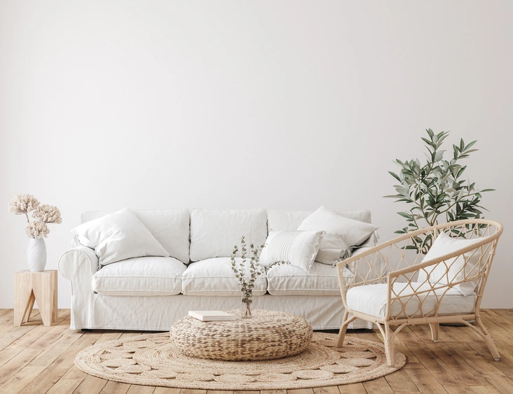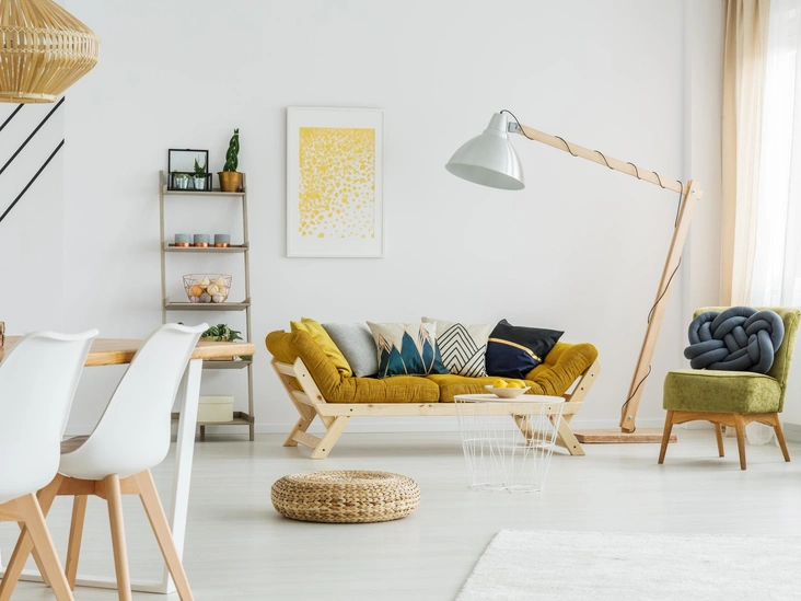 Тренд на экологичность продолжает набирать обороты, поэтому в новом году натуральные материалы и теплая естественная палитра не потеряют актуальности. Деревянные поверхности с ярким, выраженным древесным рисунком, предметы из необработанного камня, глиняные цветочные горшки и текстиль из грубого льна остаются ведущими элементами интерьера в стиле джапанди (слово сочетает корни 'Japan' и 'Skandi' и означает гибрид скандинавского и японского минимализма). В его основе лежат простая геометрия и минимальный декор. Каждый предмет занимает свое место и выполняет определенную функцию.