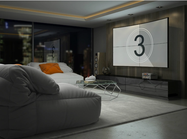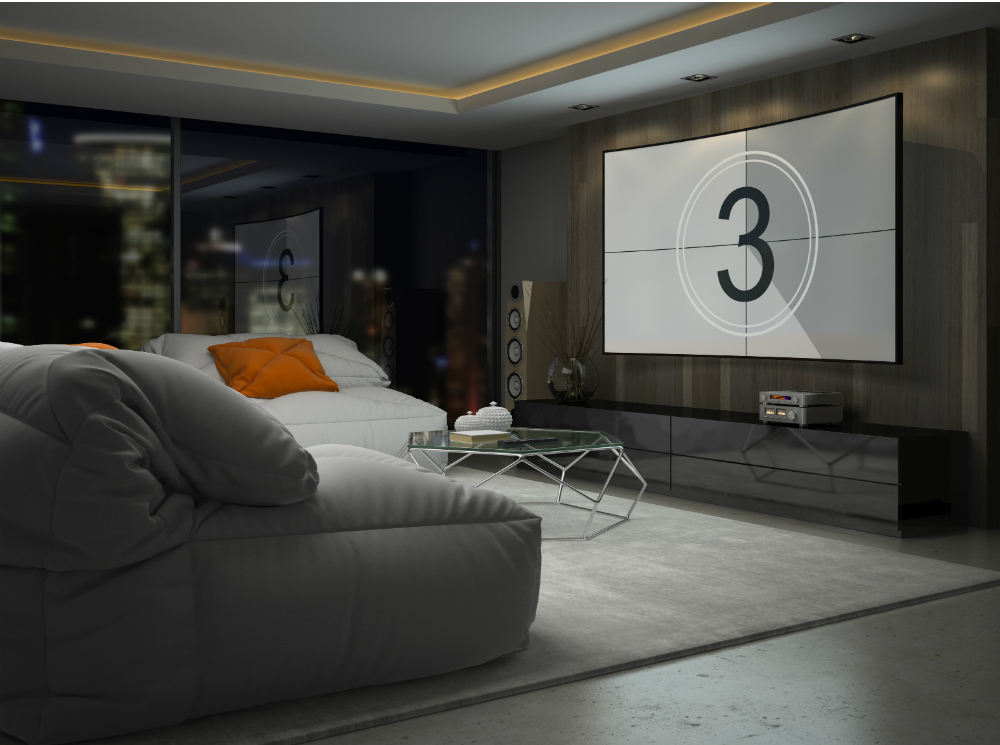 В принципе, вы можете просто выбрать большой телевизор. Но если ваша идея именно в том, чтобы воплотить мечту об атмосферном домашнем кинотеатре, повесьте на стену виниловый экран.
