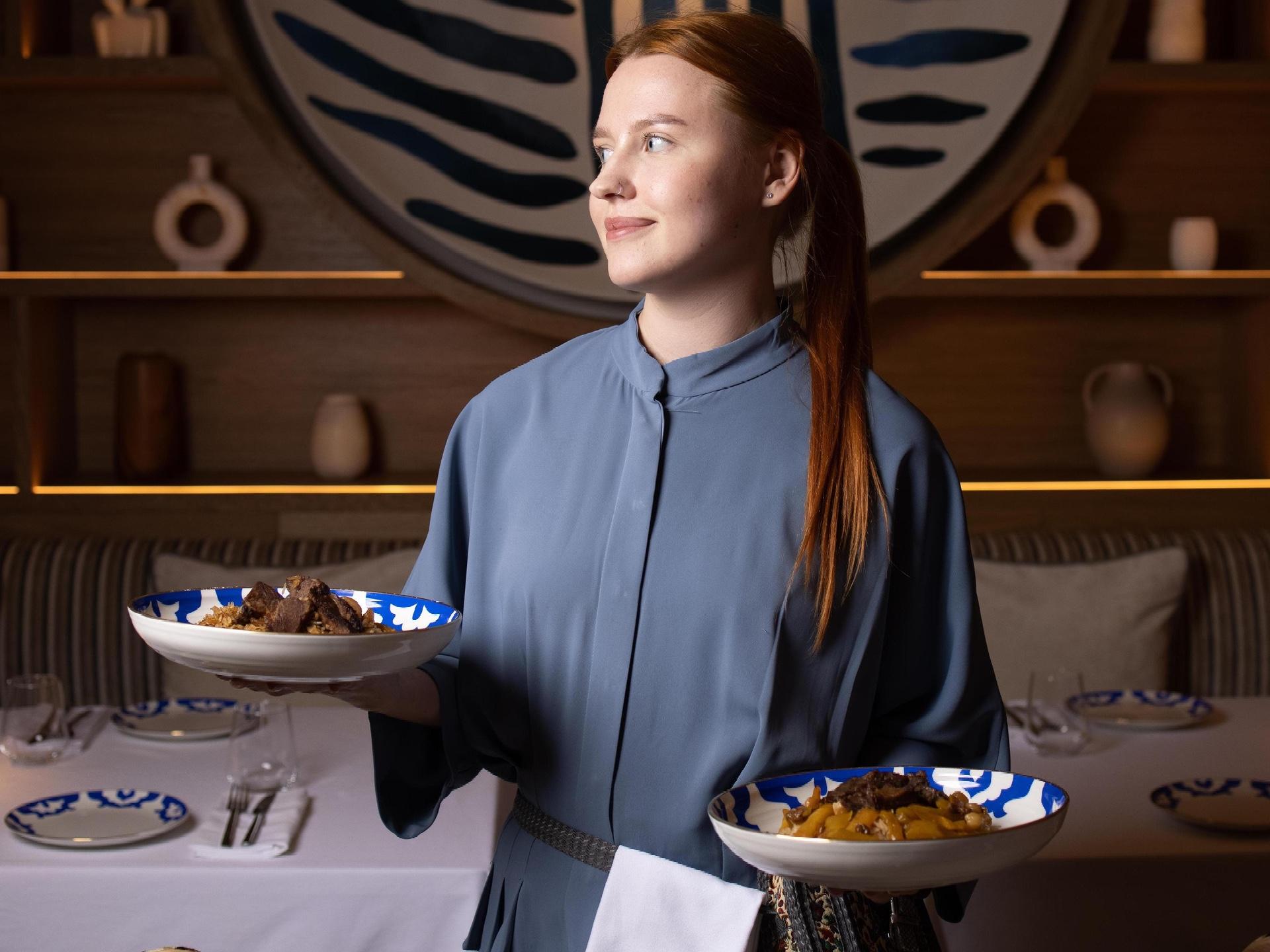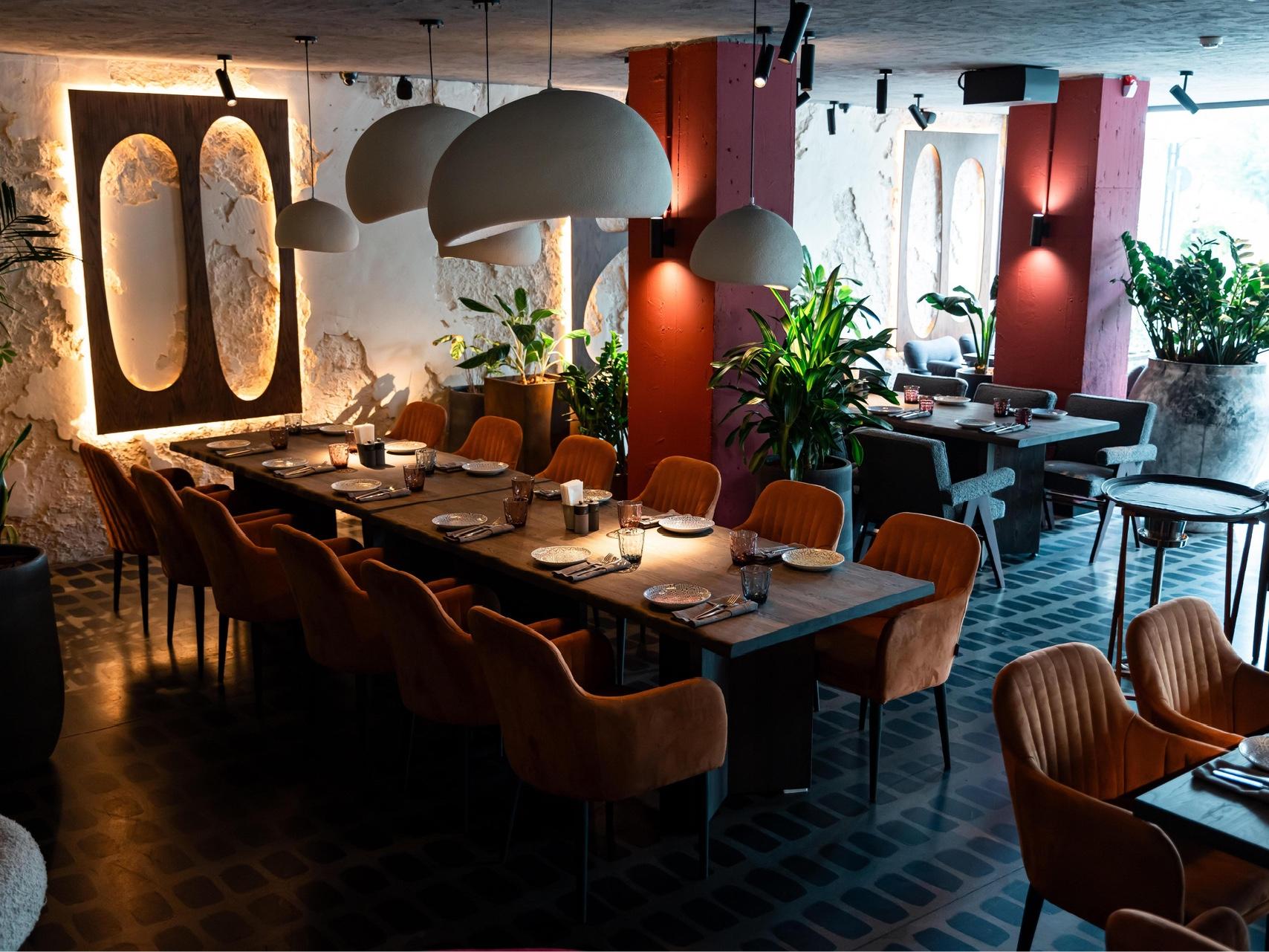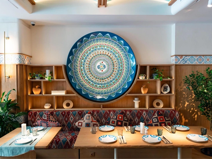 «Лали» — уменьшительно-ласкательное обращение к красивой девушке на узбекском языке. И название точно отражает атмосферу ресторана. Переступив порог, вы будто попадаете в восточную сказку: небесно-голубые и песочные оттенки интерьера, натуральные фактуры, орнаменты, ляганы, теплый свет. Хостес встречают с такими искренними улыбками, что кажется, будто пришел не в ресторан, а в уютный восточный дом.
