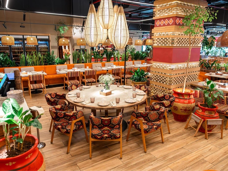 Сеть ресторанов «Южанин» от Аркадия Новикова (Novikov Group) и Ерванда Галстяна (Family Garden) давно известна своей кавказской кухней в европейском прочтении, темпераментным интерьером и танцевальной атмосферой. Теперь «Южанин» есть и в Ташкенте. Здесь стоит попробовать сочные люля и румяные хычины, а также воздушный попкорн из креветок и ротти с лососем, сыром надуги и персиковым ткемали. А еще в «Южанин» советуем приходить именно по вечерам: здесь часто звучит живая музыка, устраиваются громкие вечеринки и даже концерты знаменитостей. И, разумеется, все с кавказским размахом.