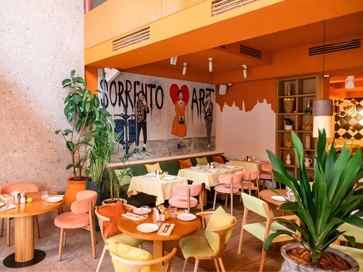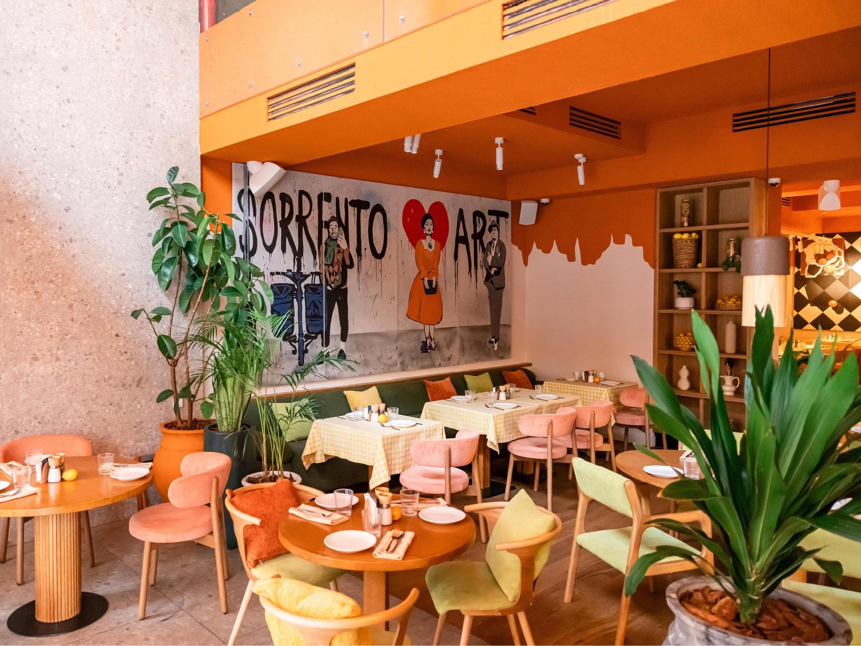 После знакомства с местной кухней и кавказского застолья можно резко сменить вектор гастрономического путешествия и направиться… в Европу. А именно — в итальянский ресторан «Сорренто», дизайн которого выполнен в теплых лимонно-терракотовых оттенках, благодаря чему интерьер буквально пронизан солнцем. На стенах картины — точные копии граффити с улиц итальянского города Сорренто, в кадках — зеленые растения и цитрусовые деревья, а в меню — антипасти, равиоли, пицца, лазанья и знаменитое и неповторимое мороженое джелато. Ну и финальный штрих, окончательно убеждающий, что мини-путешествие в Италию состоялось: заказывая на завтрак игристое или «Апероль» вы встретите в глазах официантов ноль процентов осуждения, сто процентов понимания.