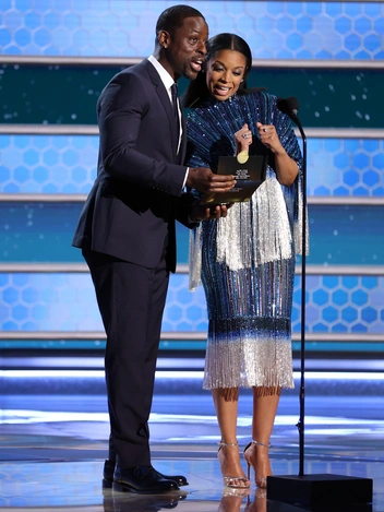 Стерлинг К. Браун и Сьюзен Келечи Уотсон — экранные муж и жена в популярном сериале «Это мы». 39-летняя Сьюзен блистала на премии в сногсшибательном платье Georges Hobeika с мерцающей бахромой и серебристых босоножках Aquazzura. В руках у актрисы был клатч Giuseppe Zanotti. На 44-летнем Брауне был идеально сидящий костюм Christian Dior с белоснежной сорочкой узким черным галстуком и безупречные классические ботинки.