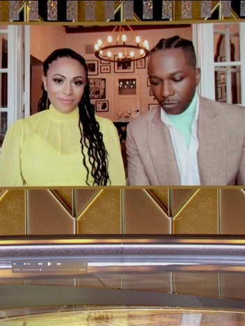 Пожалуй, из всех гостей премии эту пару можно назвать одной из самых стильных и гармоничных даже несмотря на то, что супруги присутствовали на «Золотом глобусе» только по видеосвязи. 39-летний Лесли, прославившийся музыкальными ролями, выбрал шоколадно-коричневый шерстяной костюм актуального кроя, дополнив его бледно-розовой рубашкой, под которую он надел мятную водолазку Valentino из весненне-летней коллекции Haute Couture 2021. Актер дополнил свой образ ботинками на толстой подошве часами Bulgari. Его жена — 32-летняя театральная и телевизионная актриса Николетт Робинсон — предстала на публике в ярко-желтом платье с высоким воротником и сдержанными рюшами. Несмотря на свое нежное положение, она отдала предпочтение черным босоножкам на тонких ремешках.
