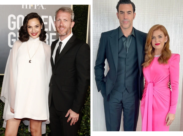 Супруги предпочли виртуальное появление на «Золотом глобусе», но от этого оно не стало менее эффектным. 49-летний Саша Барон Коэн продемонстрировал свое британское чувство стиля, остановившись на костюме-тройке Dolce & Gabbana с черной рубашкой и укороченными брюками со стрелками. Его актер дополнил часами Omega. А вот его жена внесла немного яркости в церемонию, облачившись в длинное платье Alex Perry ярко-розового цвета, удачно оттенившее рыжие волосы 45-летней уроженки Шотландии. Айла дополнила наряд украшениями Van Cleef & Arpels.